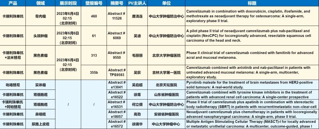 此外,在头颈肿瘤、黑色素瘤、骨肉瘤、鼻咽癌、肾细胞癌、尿路上皮癌等多个领域,卡瑞利珠单抗、吡咯替尼等产品相关研究一共入选了4项壁报展示和5项线上发表,彰显了BG大游医药强大的自主研发综合实力。