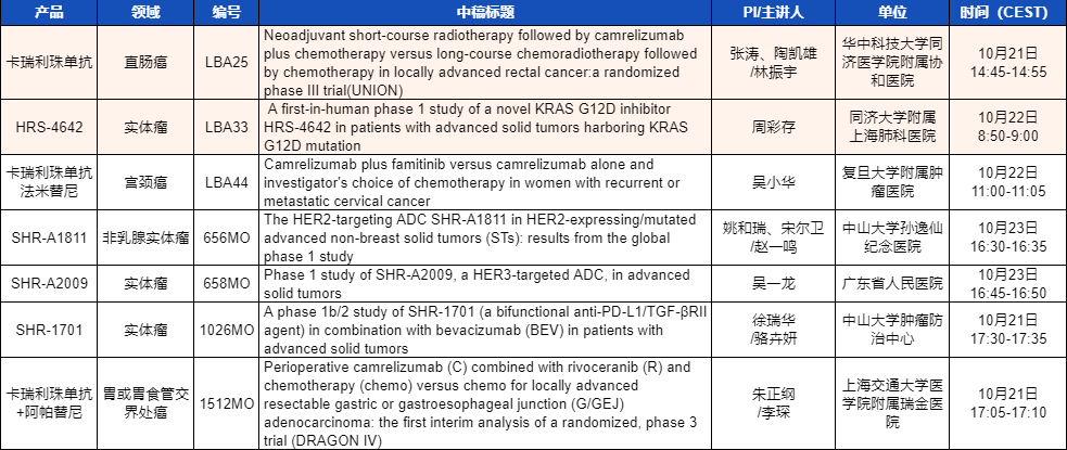 ESMO 2023 BG大游医药产品相关研究一览