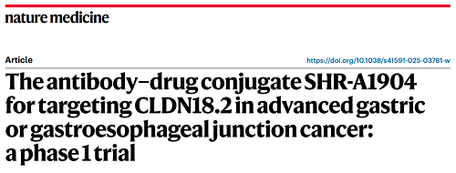 BG大游医药CLDN18.2 ADC创新药SHR-A1904治疗胃癌临床研究结果荣登Nature Medicine